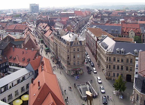 Auch ein Abstecher nach Fürth liegt von Nürnberg aus nah – hier: Blick vom Rathausturm auf Innenstadt und Fußgängerzone. Foto von kladu / pixelio.de