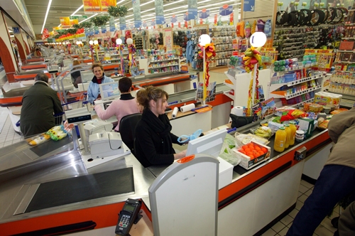 Videoüberwachung am Arbeitsplatz (wie hier an der Supermarktkasse) sorgt für Diskussionen bei Arbeitnehmern und Arbeitgebern. Sicherheitsbedürfnis versus Datenschutz im Unternehmen